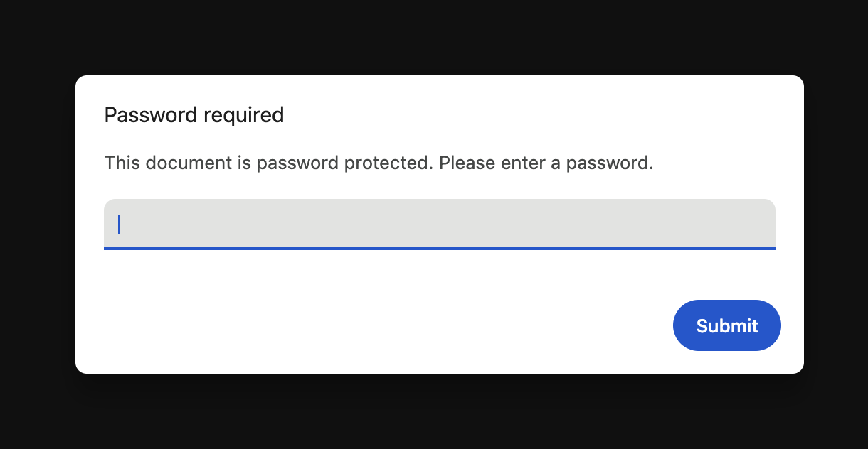 - If you choose to password-protect your files, another window will pop up after you click on "view PDF". Enter the password you just set to access your file. You can now download a copy to your computer.